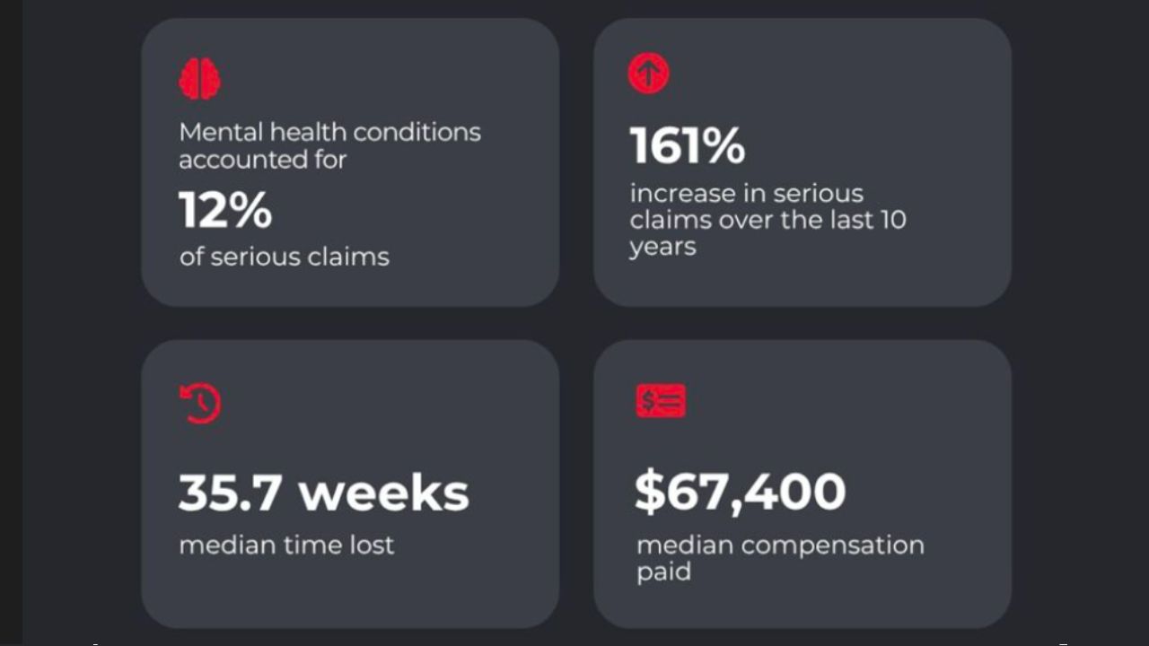 - Mental health conditions accounted for 12% of all serious workers’ compensation claims, a 161% increase over the last 10 year.